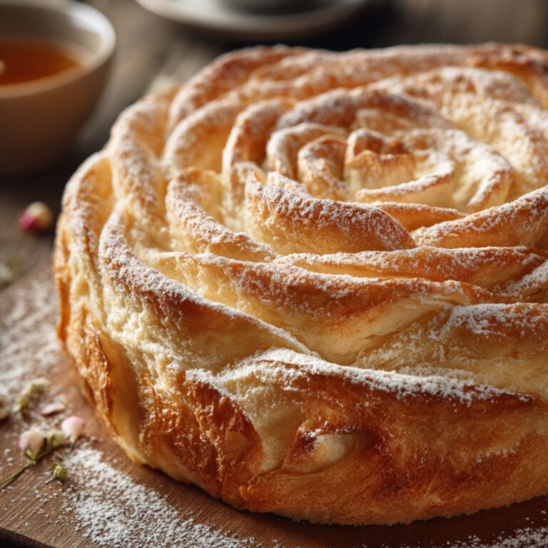 È composta da soffici girelle di pasta brioche farcite con burro e zucchero, disposte a formare una splendida “rosa” che si apre durante la cottura.