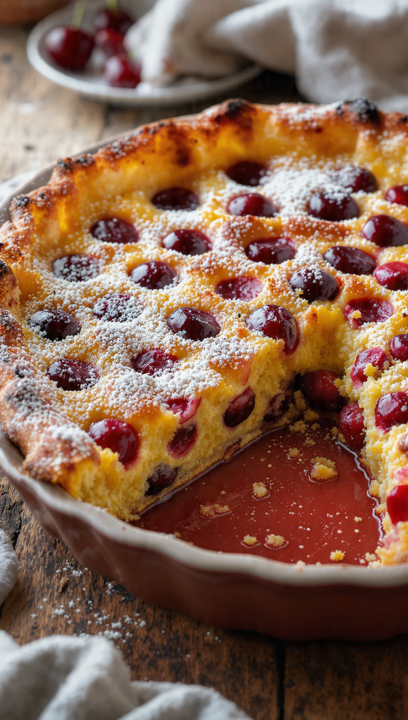 Il clafoutis alle ciliegie è un dessert tradizionale francese dalla consistenza morbida e cremosa, a metà tra un flan e una soffice frittata dolce.