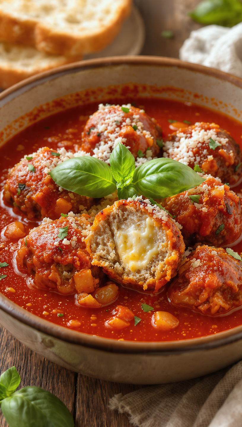 Quando sobbolle, tuffa le polpette e cuoci 25–30 minuti a fuoco dolce.