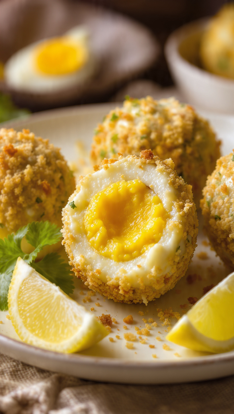 Si tratta di uova sode ripiene con un morbido composto a base di besciamella e prosciutto, impanate e fritte fino a diventare dorate e croccanti fuori, vellutate e avvolgenti dentro.