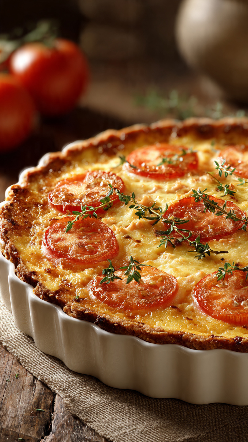 La quiche senza pasta al tonno e pomodoro è una versione più leggera della classica quiche francese, ideale per chi vuole un piatto saporito ma semplice, perfetto per una cena veloce o un pranzo da preparare in anticipo.