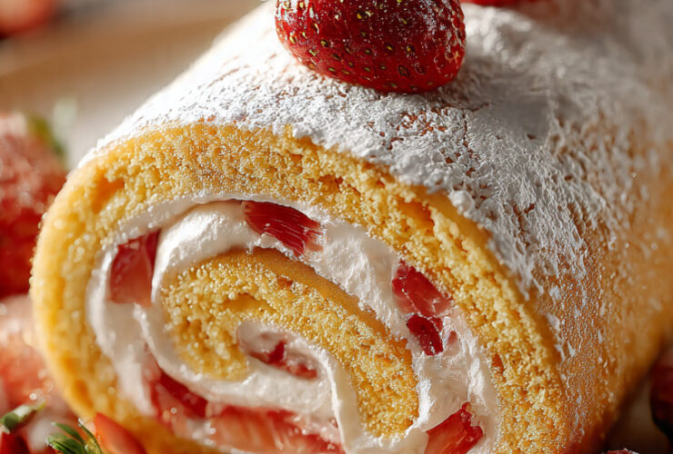 Il Gâteau Roulé alle Fragole e Chantilly è un dolce leggero, soffice come una nuvola e incredibilmente elegante.Una base di pasta biscotto morbida e sottile, arrotolata con una farcitura fresca di panna montata e fragole, che ad ogni morso regala ...