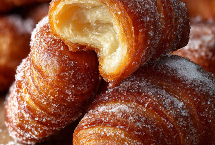I Beignes Croissants sono la fusione perfetta tra due mondi: la leggerezza sfogliata del croissant e la golosità irresistibile del beignet.La pasta lievitata si gonfia in frittura fino a diventare morbida e alveolata dentro, leggermente croccante fuori, pronta per essere ...